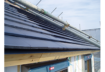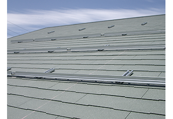 スレート瓦の屋根に設置する工法です(フルベスト・ニューコロニアル等を含む)。スレートの働き幅や厚さに制限があります。