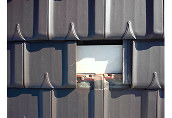 JIS規格に対応した特定の和瓦・平瓦屋根に設置する工法です。同型のアルミ製の瓦に差し替えて設置します。