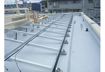 マンションの屋上や地面に設置する工法です。コンクリートに直接アンカーボルトを差して架台を取り付けます。