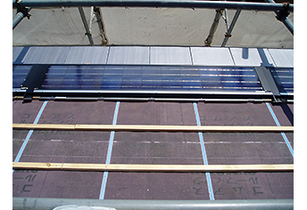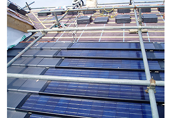 新築・リフォーム時に設置する事ができる工法です。平瓦と同じ厚みのパネルを屋根材として使用しているので意匠性に優れた外観です。