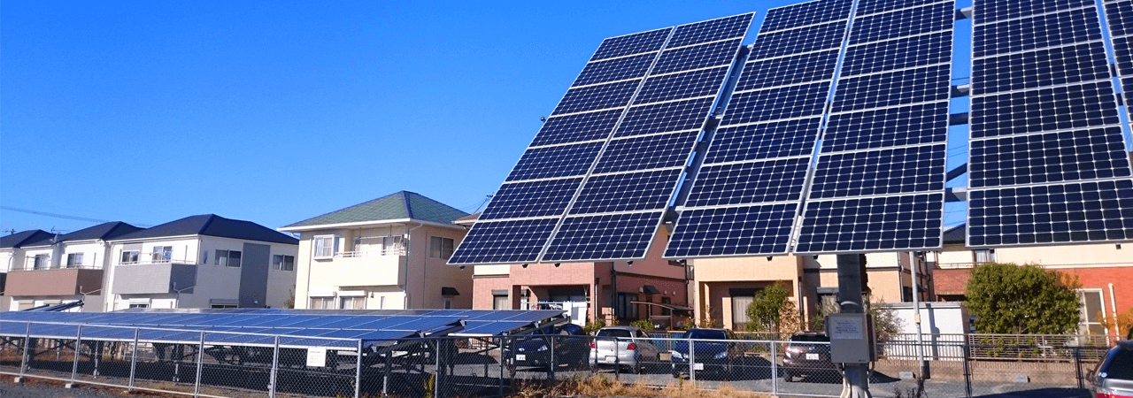 地面設置型の太陽光発電システムです。遊休地や雑種地など余った土地を有効活用することができます。